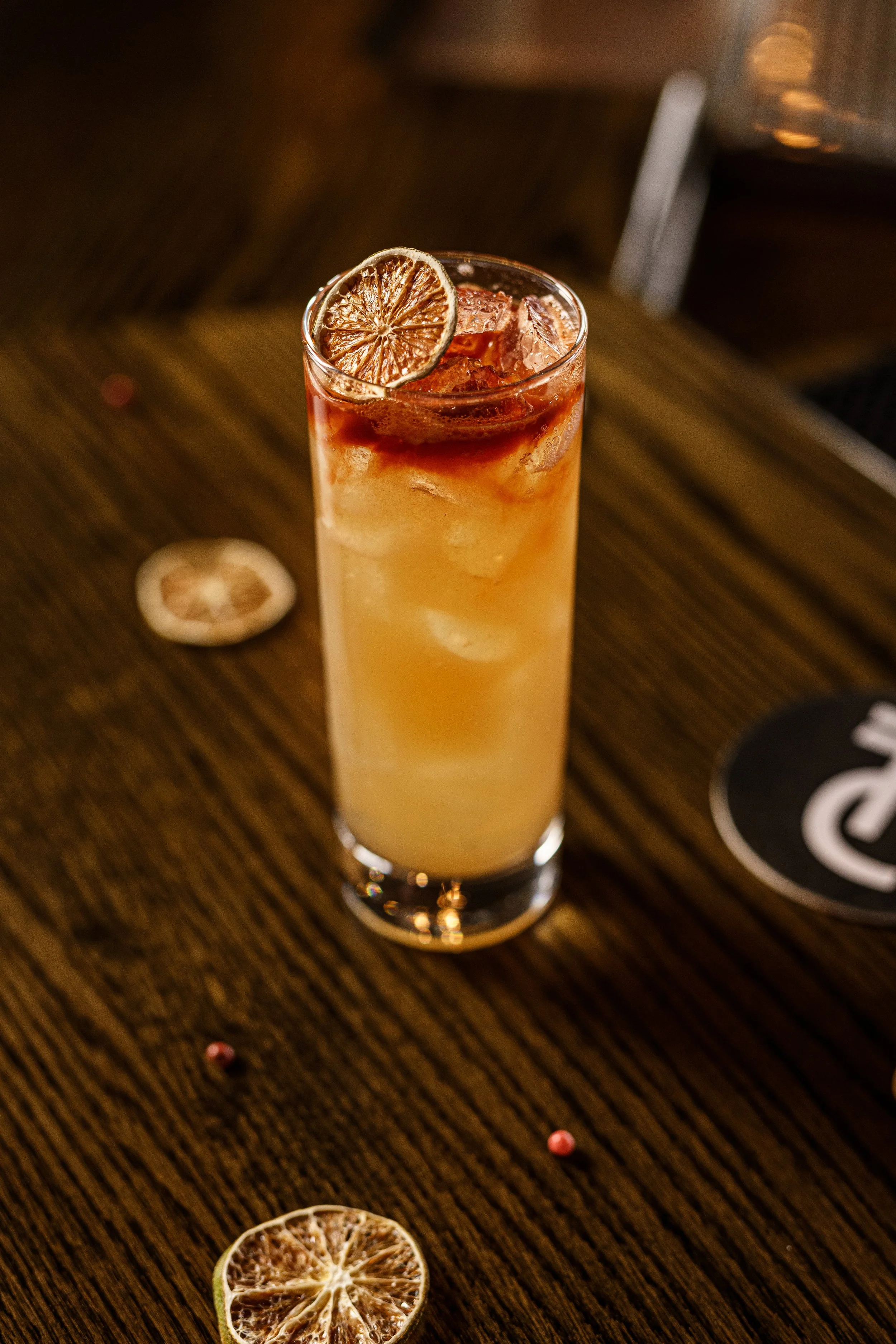 Add Caru and lemon juice to ice in a long glass, top up with ginger beer. Add garnish with orange.